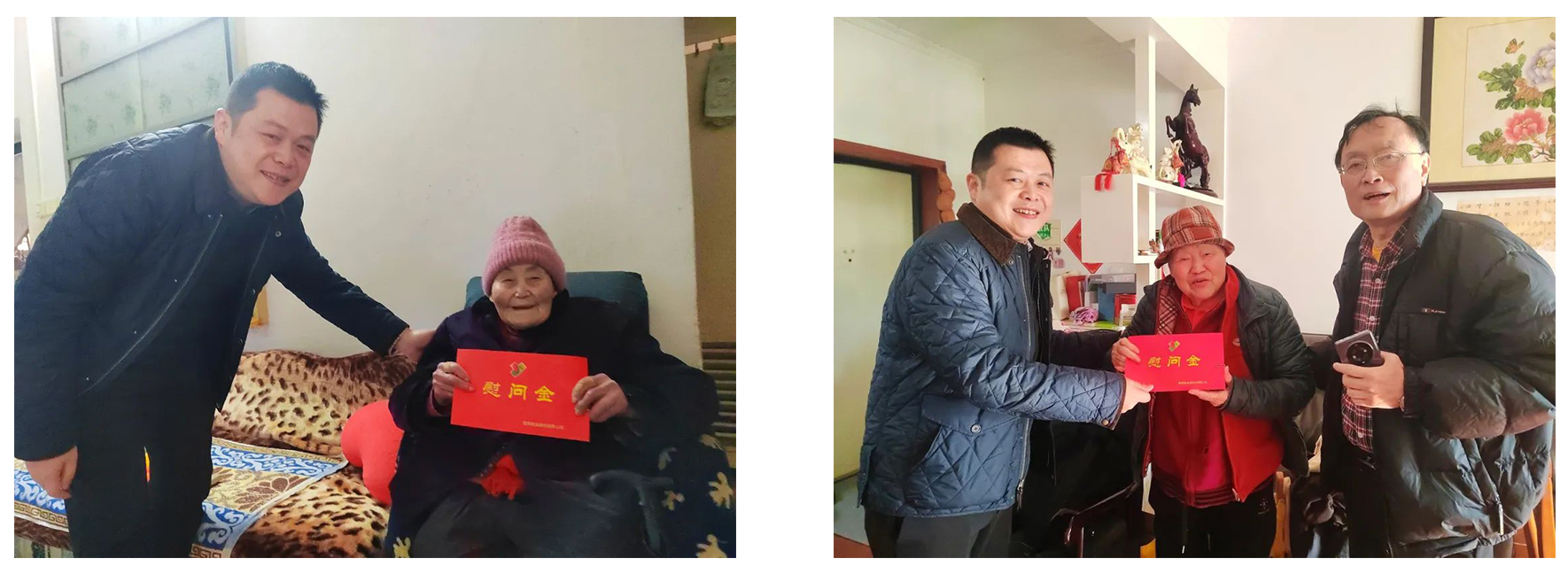 在離休老干部賈斌遺孀陳宇和離休老干部張振宴遺孀門惠蘭家中,黃才津關(guān)切詢問她們的身體與生活情況,對離休老干部們?yōu)楣景l(fā)展所做出的貢獻(xiàn)表達(dá)崇高敬意,并祝愿陳宇、門惠蘭二位老人身體健康、和美幸福。